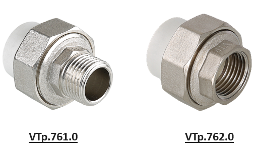 Обращаем Ваше внимание на пополнение ассортимента разъемных полипропиленовых фитингов с переходом на наружную резьбу VTp.761.0 и с переходом на внутреннюю резьбу VTp.762.0 новым типоразмером: 40 мм х 1’’.